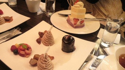 普通ならモンブランが2つではなく、プチサイズのジョトォ(写真の奥にあるショートケーキ)がつくのですが、たまたま品切れだったらしく…くぅっ、残念!